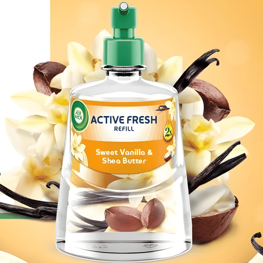 Válassza az Air Wick ACTIVE FRESH utántöltőt, és élvezze otthona frissességét. A Sweet Vanilla & Shea Butter illat kifinomult harmóniája hosszan tartó, kellemes atmoszférát teremt bármely helyiségben.