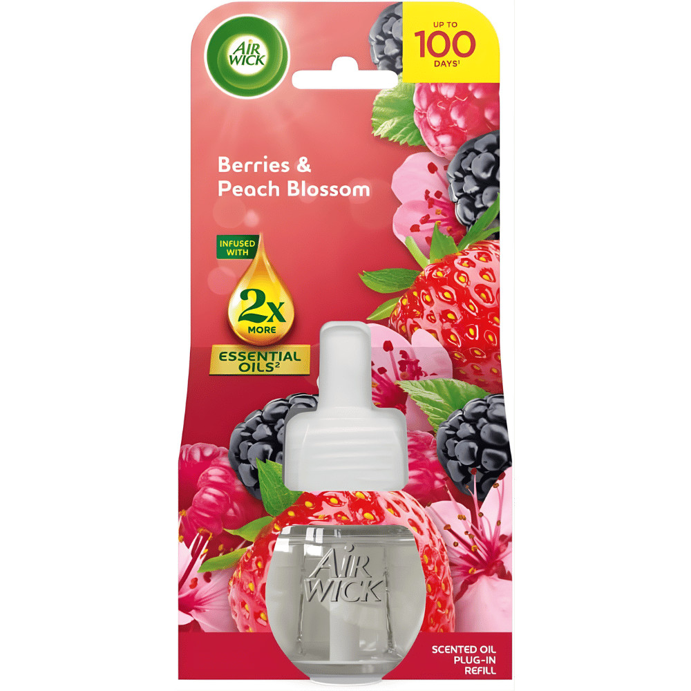 Air Wick elektromos illatosító utántöltő 19ml Berries & Peach Blossom – Hosszútávú frissesség otthonába