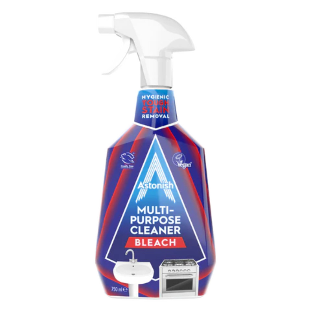 Az Astonish univerzális felülettisztító spray a fehérítő hozzáadott erejével lebontja a makacs foltokat, miközben biztosítja, hogy a felületek higiénikusan tiszták legyenek.
