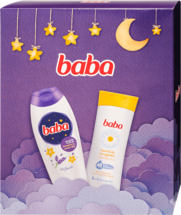 Szerezz örömet szeretteidnek vagy kényeztesd magad egy pihentető esti rutinnal a Baba Jóéjtpuszi ajándékcsomag segítségével! A több mint 100 éves múltra visszatekintő Baba márka a gyengéd gondoskodás szinonimája, és ez a csomag tökéletesen megtestesíti ezt a hagyományt. Ideális választás a mindennapi rohanás utáni feltöltődéshez, hiszen a benne található termékek segítenek ellazulni és ápolják a bőrt.