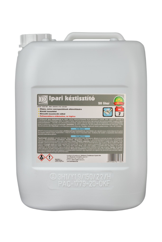 A Brilliance® Ipari kéztisztítóval az olajos, zsíros szennyeződéseket lehet eltávolítani a kézről. Akár napjában többször is használható a bőr kiszáradása nélkül. Ez nagyon fontos, mert az amúgy is erősen igénybevett kéz érzékenyebben reagál az olajos szennyeződésekre. A termék nem dörzsölő összetevővel, hanem szerves oldószerrel oldja le kíméletesen a szennyeződéseket, ezzel is csökkentve az irritáció lehetőségét.