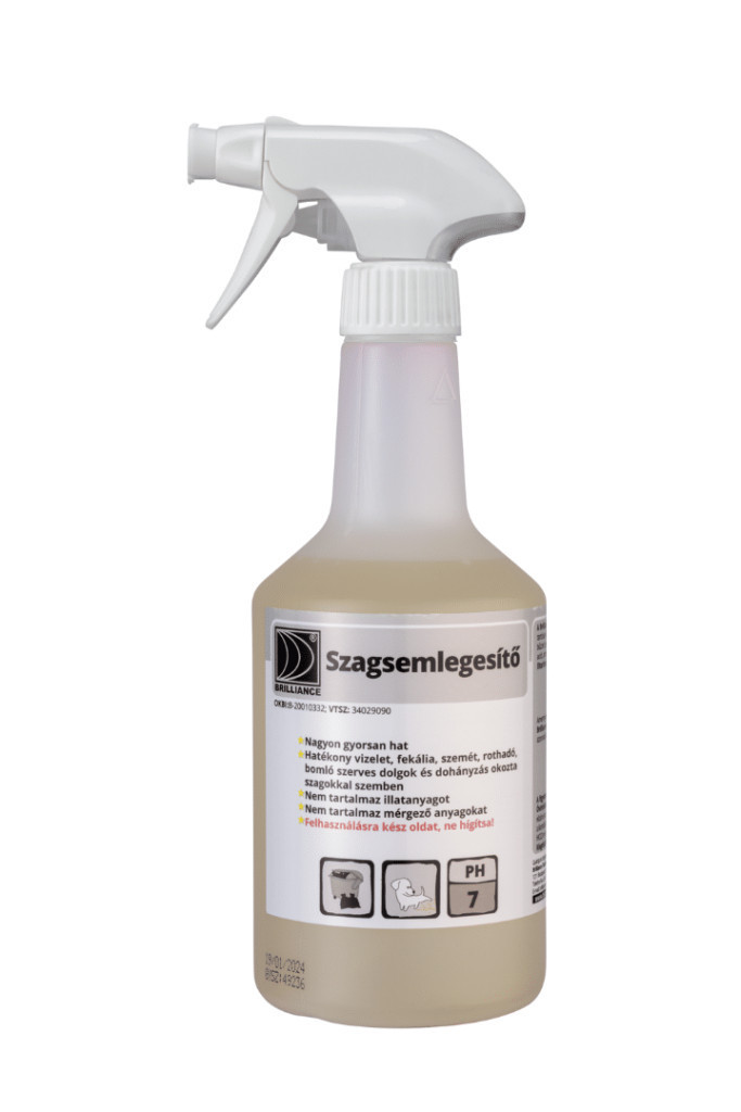 A Brilliance® Szagsemlegesítő nem illattal fedi el a kellemetlen szagokat, hanem biológiailag bontja le azokat. Gyorsan hat és tartósan elbír a szemét- vagy dohány-, illetve állati eredetű szagokkal. Hatékony továbbá a vizelet, fekália és a rothadó, bomló bűzzel szemben is. Nem marja meg a felületeket, mivel nem tartalmaz semmilyen agresszív összetevőt.