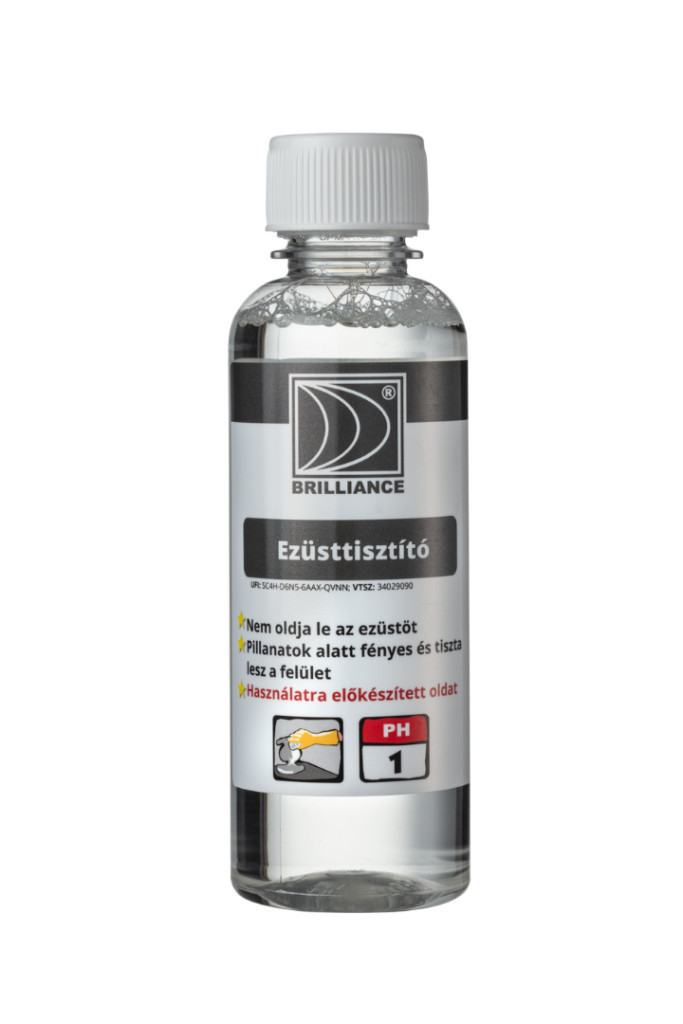 Ezüst tisztítás: Egy olyan edényben, amit élelmiszerhez nem használnak, (ez ne legyen alumínium vagy nemesacél) készítsen egy fürdőt, amibe helyezze bele az ezüst tárgyakat. Rövid idő elteltével vegye ki azokat és azonnal öblítse le, majd puha ronggyal törölje szárazra a felületét. Nagyobb tárgyakat Brilliance® Ezüsttisztító folyadékba mártott vatta segítségével tisztítsa meg. Kesztyűt mindig használjon!Ne használja: új ezüstre, nemesacélra, drágakőre, korállra, gyöngyre és gyöngyházra.