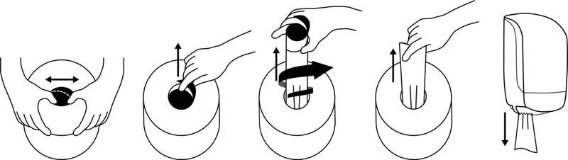 A tekercs 200 mm széles és 200 mm átmérőjű, 61 mm-es maggal, így a legtöbb Medium méretű Katrin adagolóval kompatibilis.