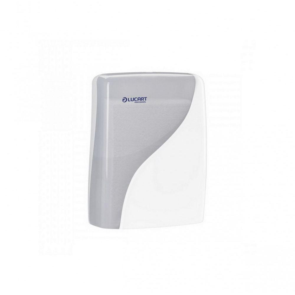 A Lucart Identity termékcsalád hajtogatott kéztörlő adagolója. Stílusos fehér külsejével exkluzív megjelenést kölcsönöz a mosdónak. Kb. 600 "V", illetve "Z" hajtogatott papír kéztörlő tárolására alkalmas. Kulccsal zárható ABS műanyag ház.
