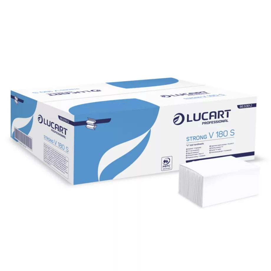 Lucart Strong V180S hajtogatott kéztörlő - 2 rétegű, hófehér, 180 lap (10x23 cm)