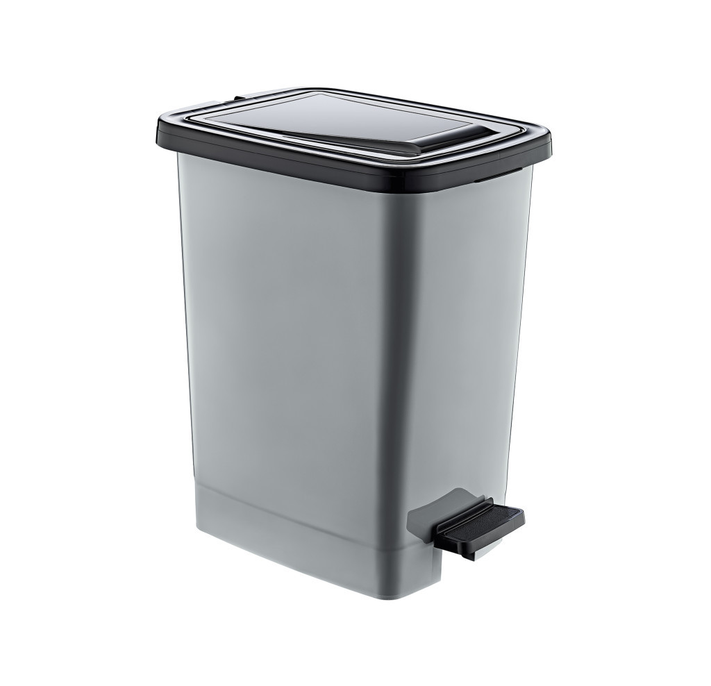 Műanyag pedálos szemetes, ezüst/szürke 15L