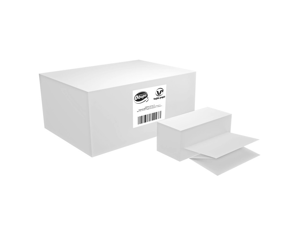 Ooops! kéztörlő H2 Interfold 2r., fehér, 100% cellulóz, 20,8cmX21cm, 200lap/csg, 20csg/karton, 30karton/raklap