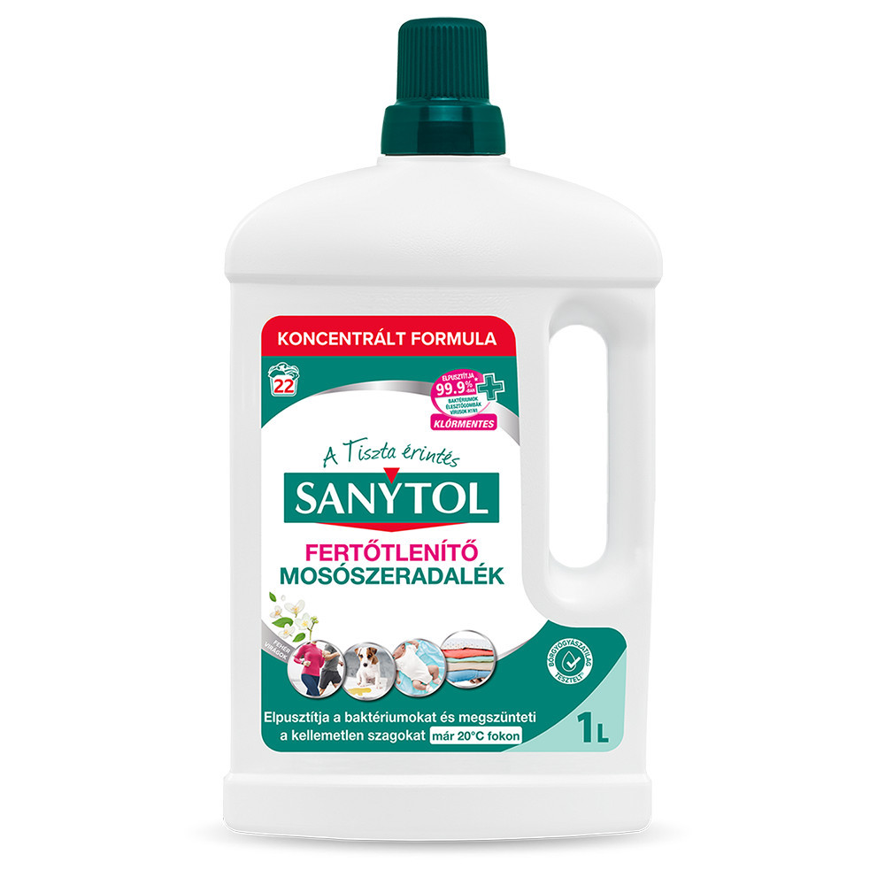 Az alacsony hőmérsékleten történő mosás önmagában nem mindig elegendő a textíliákon megtelepedő mikrobák teljes eltávolítására. A Sanytol fertőtlenítő mosószeradalék klórmentes formulájával higiénikus tisztaságot biztosít, elpusztítva a baktériumok, gombák és vírusok 99,9%-át már 20°C-os mosási hőmérsékleten is.