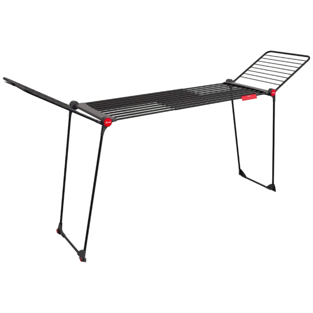 Prémium matt fekete ruhaszárító 20 méteres szárítási felülettel és extra vastag XXL huzalokkal a gyűrődésmentes ruhákért. Stabil kialakítása és beépített kerekei kényelmes használatot biztosítanak minden otthonban.