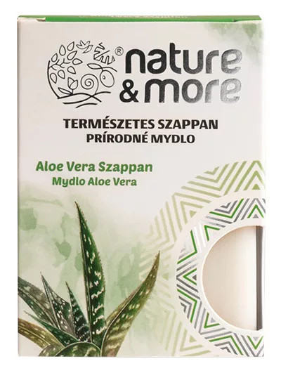 A Nature&more szappan Aloe vera tartalmával a legtermészetesebb ápolást és védelmet nyújtja bőrének. Segít a bőrnek visszanyerni az elvesztett nedvességet. Kellemes illatával felfrissíti bőrét.