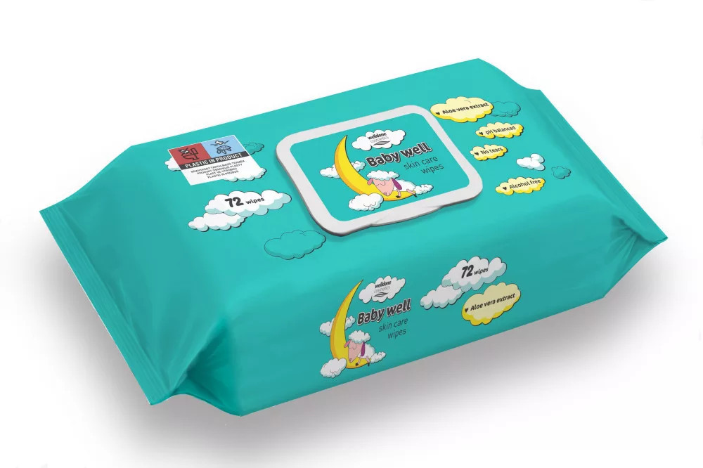 Különleges anyagból készült bőrápoló törlőkendő, rendkívül puha és kellemes tapintást ad a baba bőrének. Tökéletesen tisztítja és felfrissíti a baba bőrét, megelőzve a pelenka okozta irritációtól. Alkoholt nem tartalmaz, mindennapos használatra alkalmas.