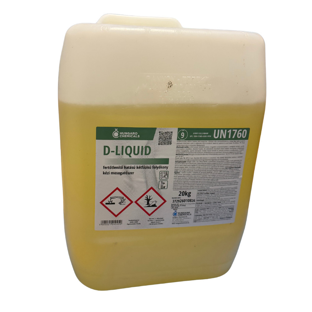 D-Liquid fertőtlenítő hatású kétfázisú, folyékony kézi mosogatószer, baktericid, yeasticid, virucid hatású 20kg (betétdíjas: 3450 Ft+Áfa/kanna)