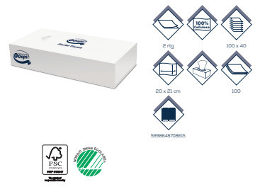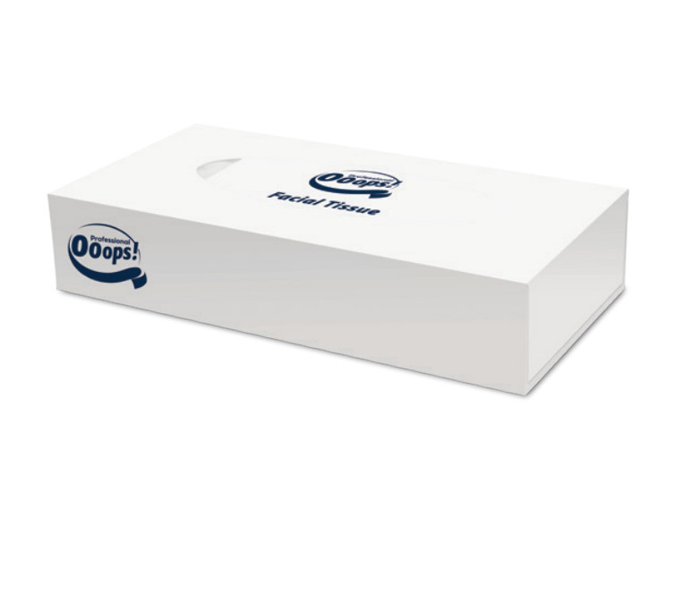 Ooops! dobozos kozmetikai kendő, 2 rétegű, 100db/doboz, 40doboz/karton, 16karton/raklap